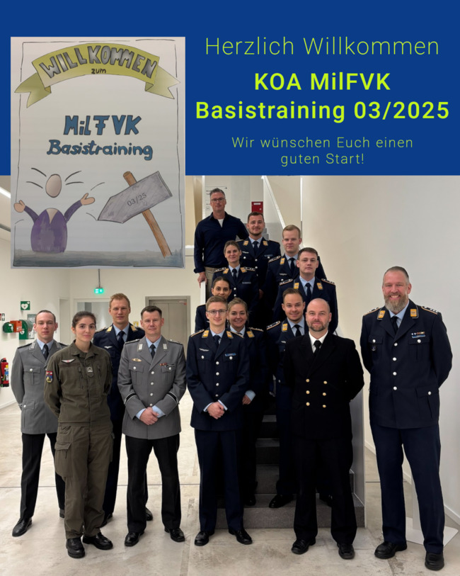 Diese Woche starteten die Trainingsteilnehmenden des KOA MilFVK Basistrainings 03/2025 mit dem lehrgangsgebundenen Teil ihrer Ausbildung zum militärischen Fluglotsen. Wir wünschen ihnen einen guten Start und eine angenehme Zeit bei uns.